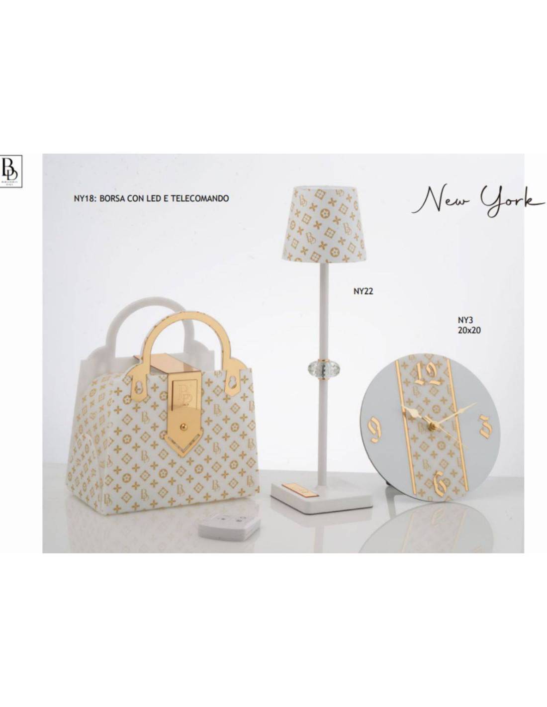Bomboniere particolari bianche e dorate appartenenti alla collezione Buba Design Made in Italy. Non perderti questi eleganti bomboniere con vasta possibilità di scelta tra lampade e orologio.