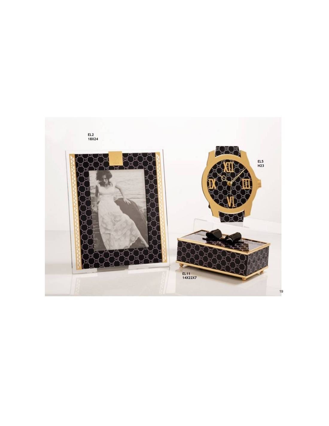 Particolari bomboniere moderne con possibilità di scelta tra portafoto, orologio o portagioie con fantasia gucci.