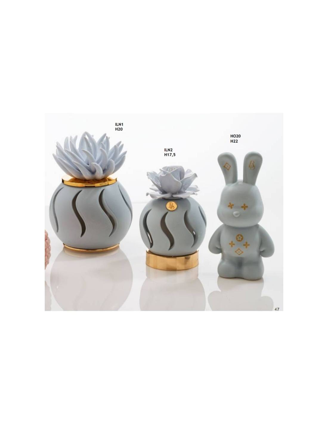 Bomboniere moderne appartenenti alla linea Illusion con possibilità di scelta tra eleganti lampade led decori raffinati in ceramica o statua coniglio da appoggio.