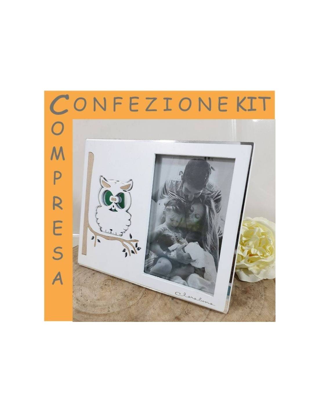 Quadretto Claraluna bomboniera per fotografie da ricordare con gufo portafortuna