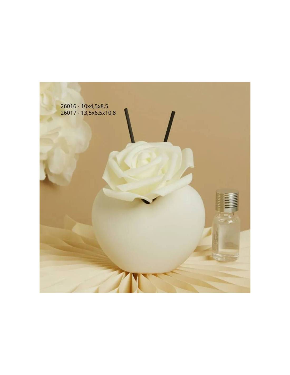 Profumatori per ambienti vaso a forma di cuore con fiore decorativo che da un effetto elegante e raffinato.