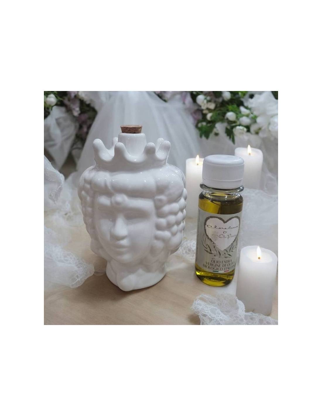 Non perderti queste bellissime bomboniere oliera teste di moro in ceramica con olio 60ml (8.5x8x12.6cm circa - 250ml)
