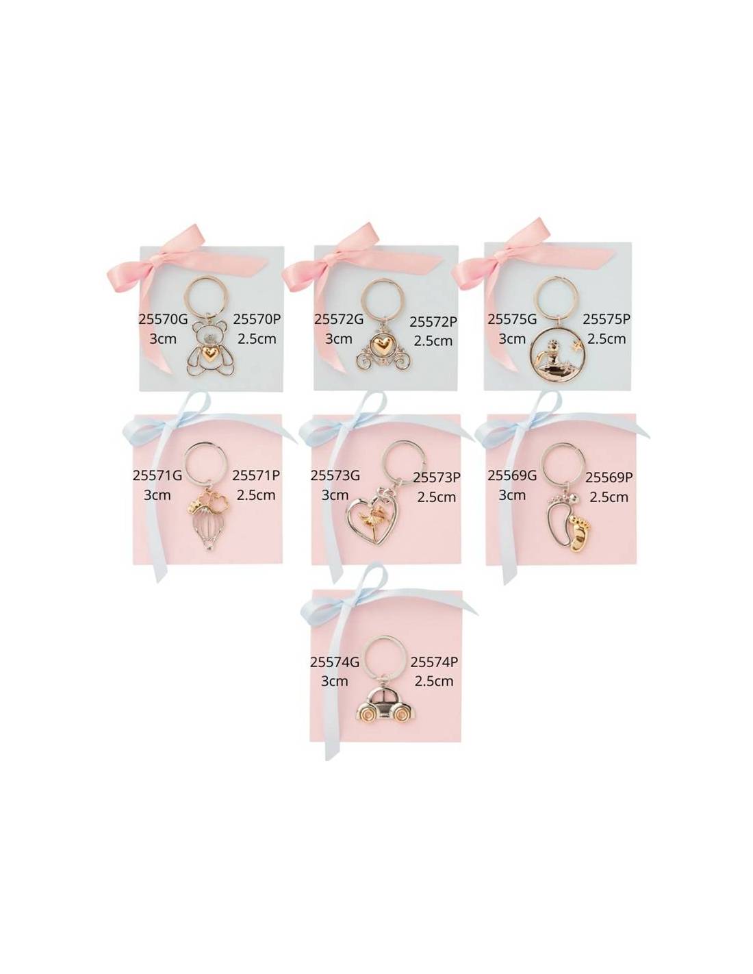 Bomboniere particolari portachiavi argentati e dorati originali Claraluna con vasta possibilità di scelta tra tema piccolo principe, orsetti, carrozza principessa, mongolfiera, cuore ballerina, piedini e macchinina.