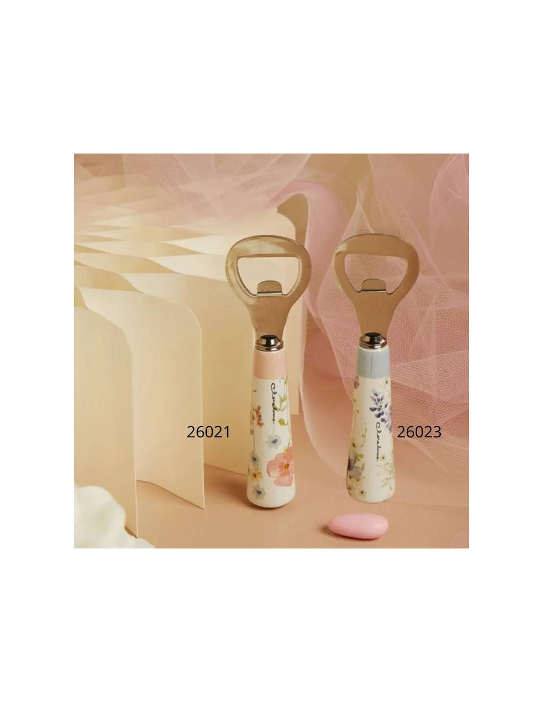 Bomboniere utili Claraluna eleganti apribottiglie con manico effetto ceramica con fantasia floreale.