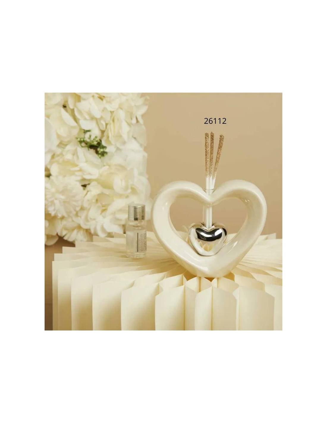 Bomboniere profumatori Claraluna a forma di cuore in ceramica bianca con secondo cuoricino interno argentato ideale per evento Matrimonio.