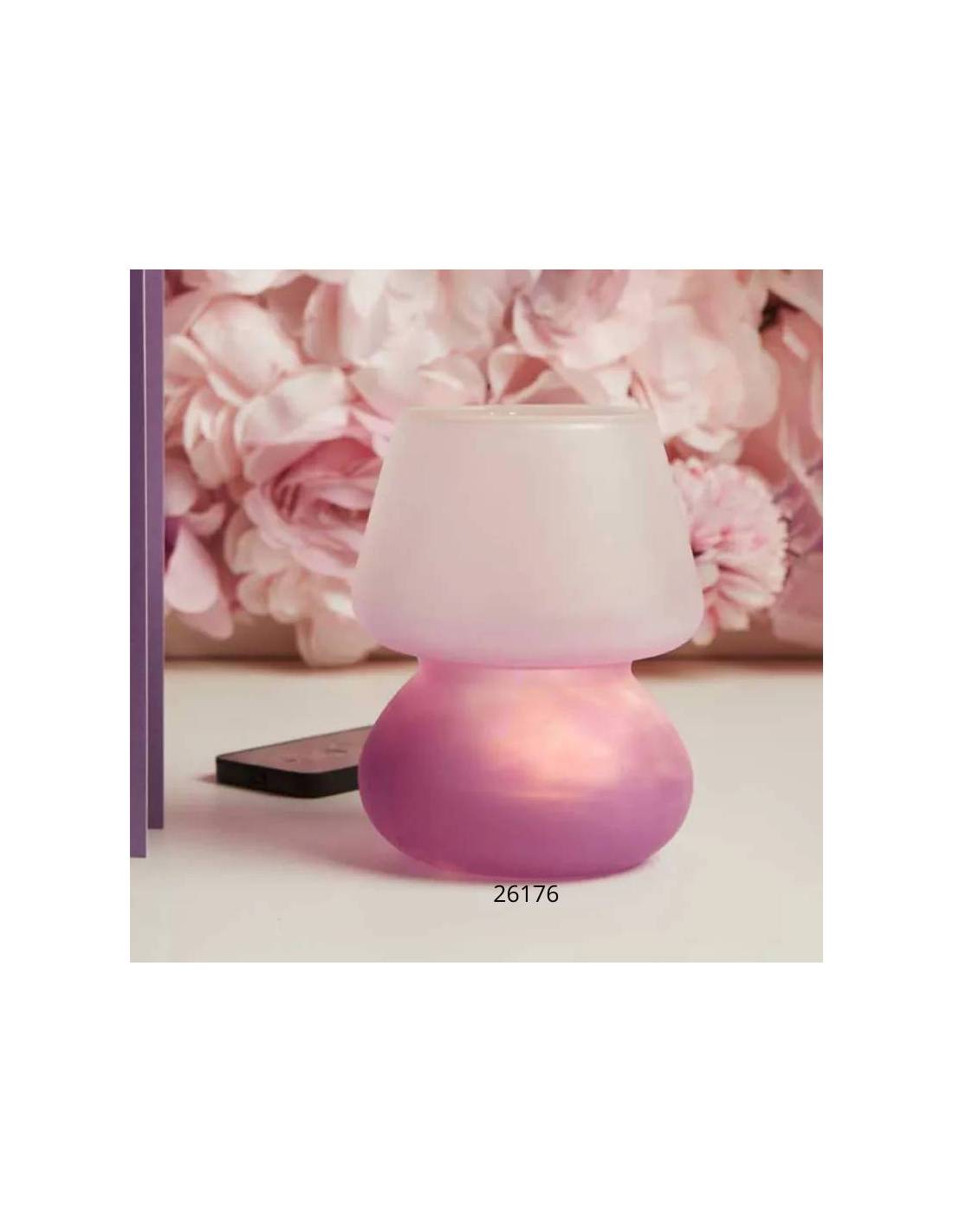 Bomboniere raffinate ed eleganti lampada da tavolo forma ovale base lilla sfumata e parte superiore satinata che trasmette una luce calda e soffusa.