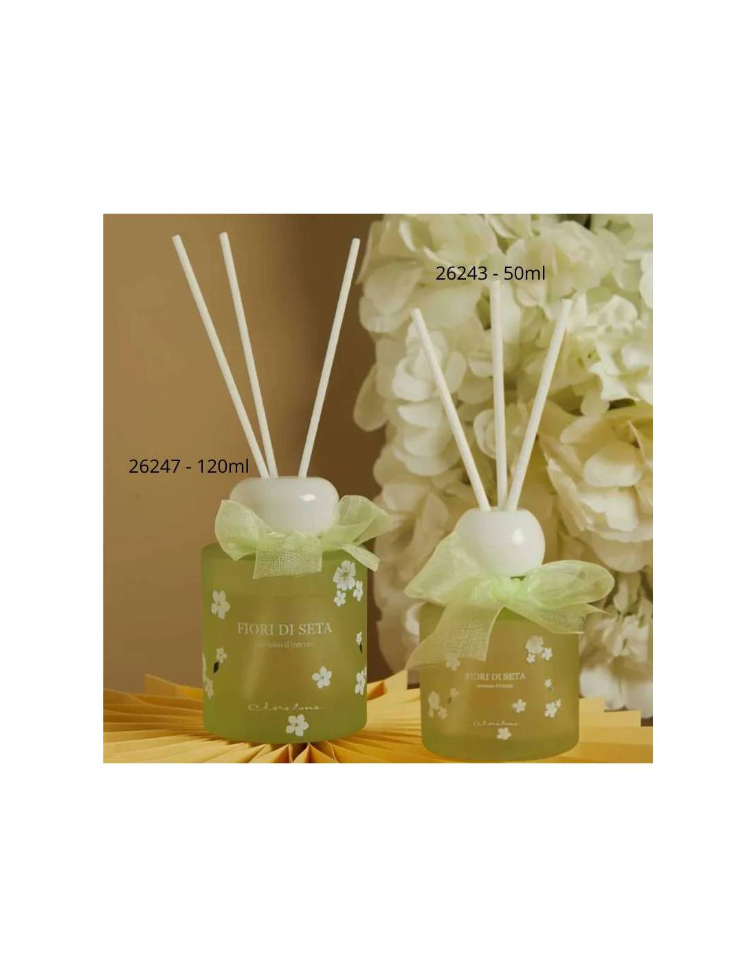 Diffusori per ambienti bomboniere originali firmate Claraluna decoro fiore con possibilità di scelta tra due modelli.