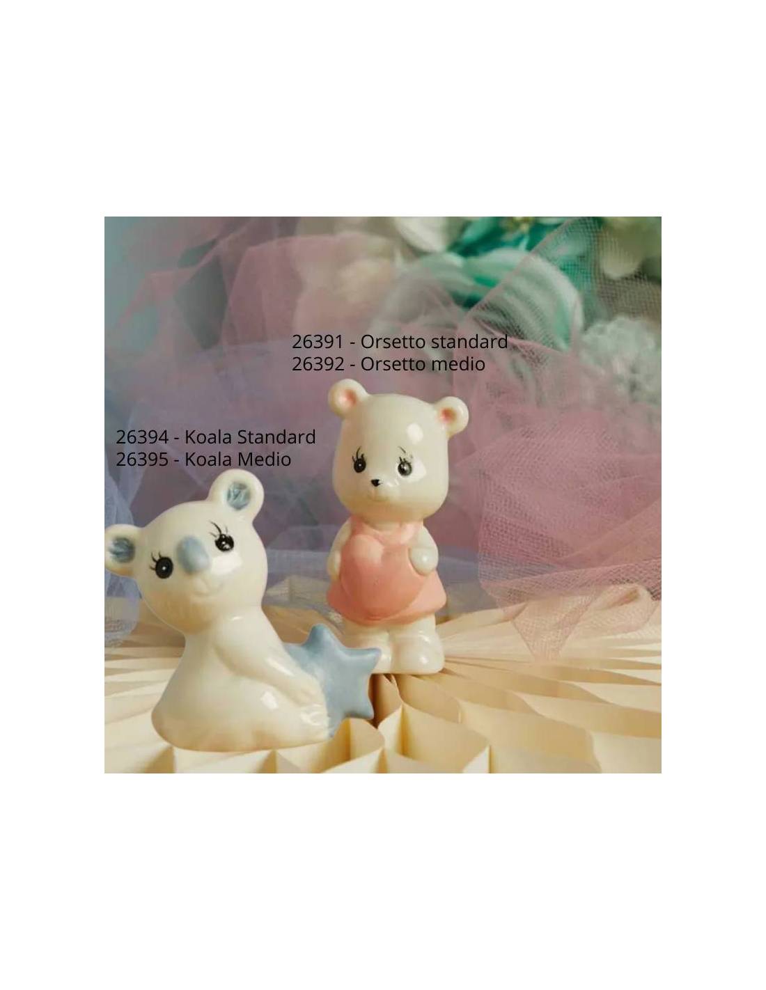 Bomboniere in porcellana statuine animaletti orsetto rosa o koala celeste ideali per evento Battesimo.