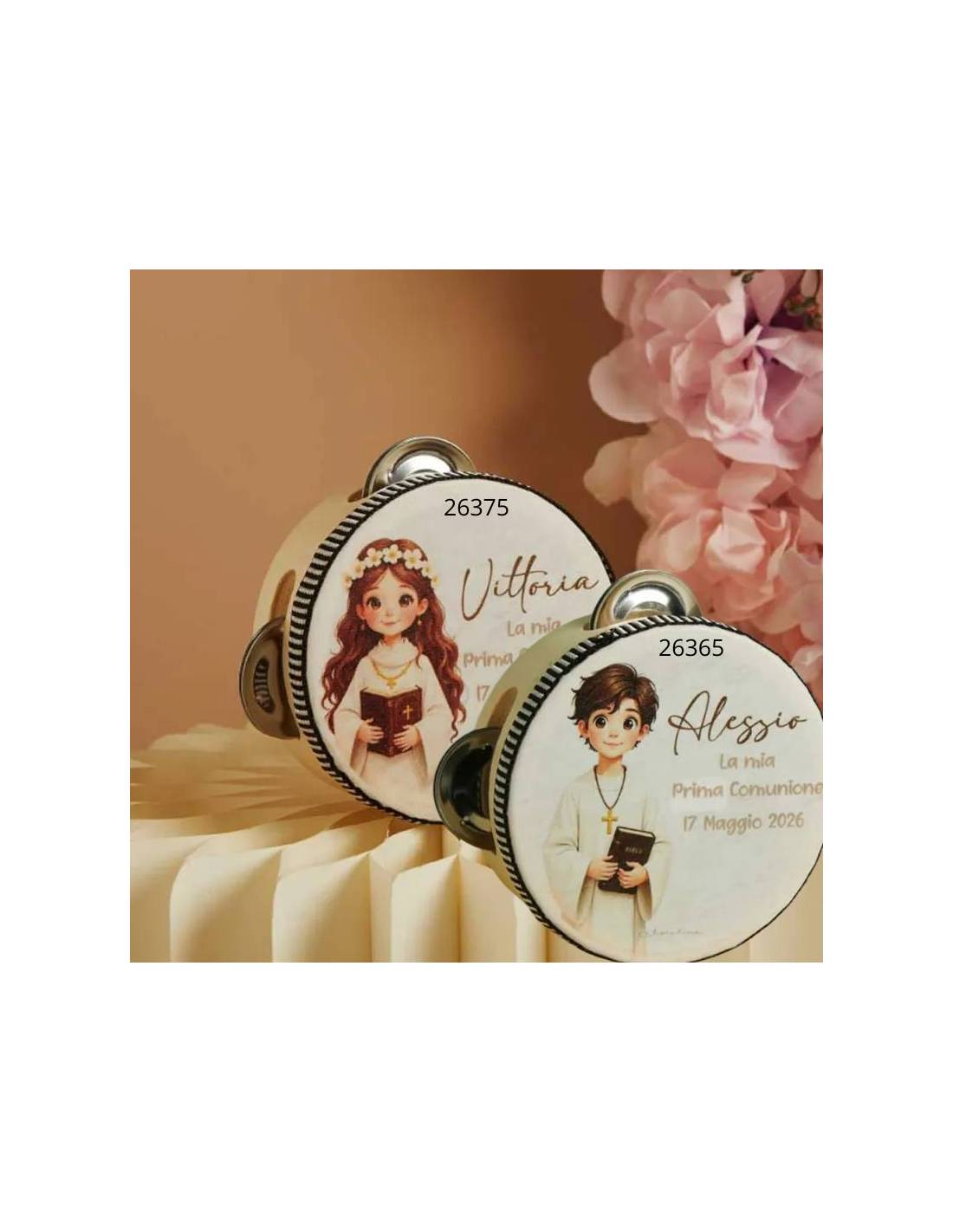 Bomboniere personalizzate Comunione bellissimi e particolari tamburelli con possibilità di scelta tra la versione per bambino o bambina.