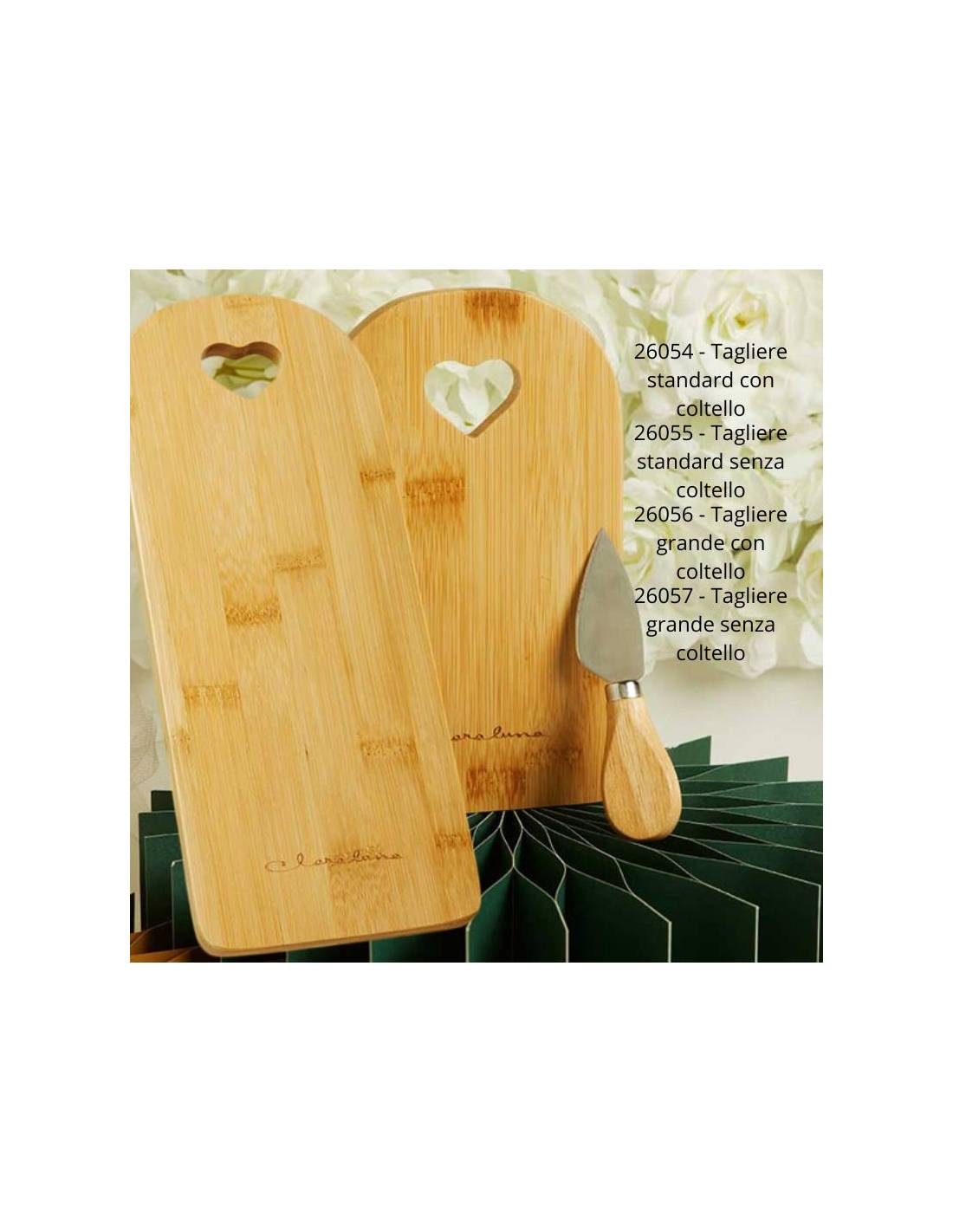 Bomboniere Matrimonio originali taglieri in bamboo con foro a forma di cuore disponibile in diverse dimensioni con o senza coltello.