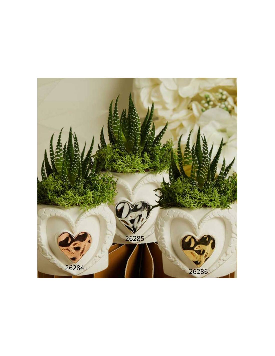 Bomboniere eleganti imperdibili vasetti portapiante in porcellana bianca a forma di cuore con possibilità di scelta tra due modelli con o senza pianta.