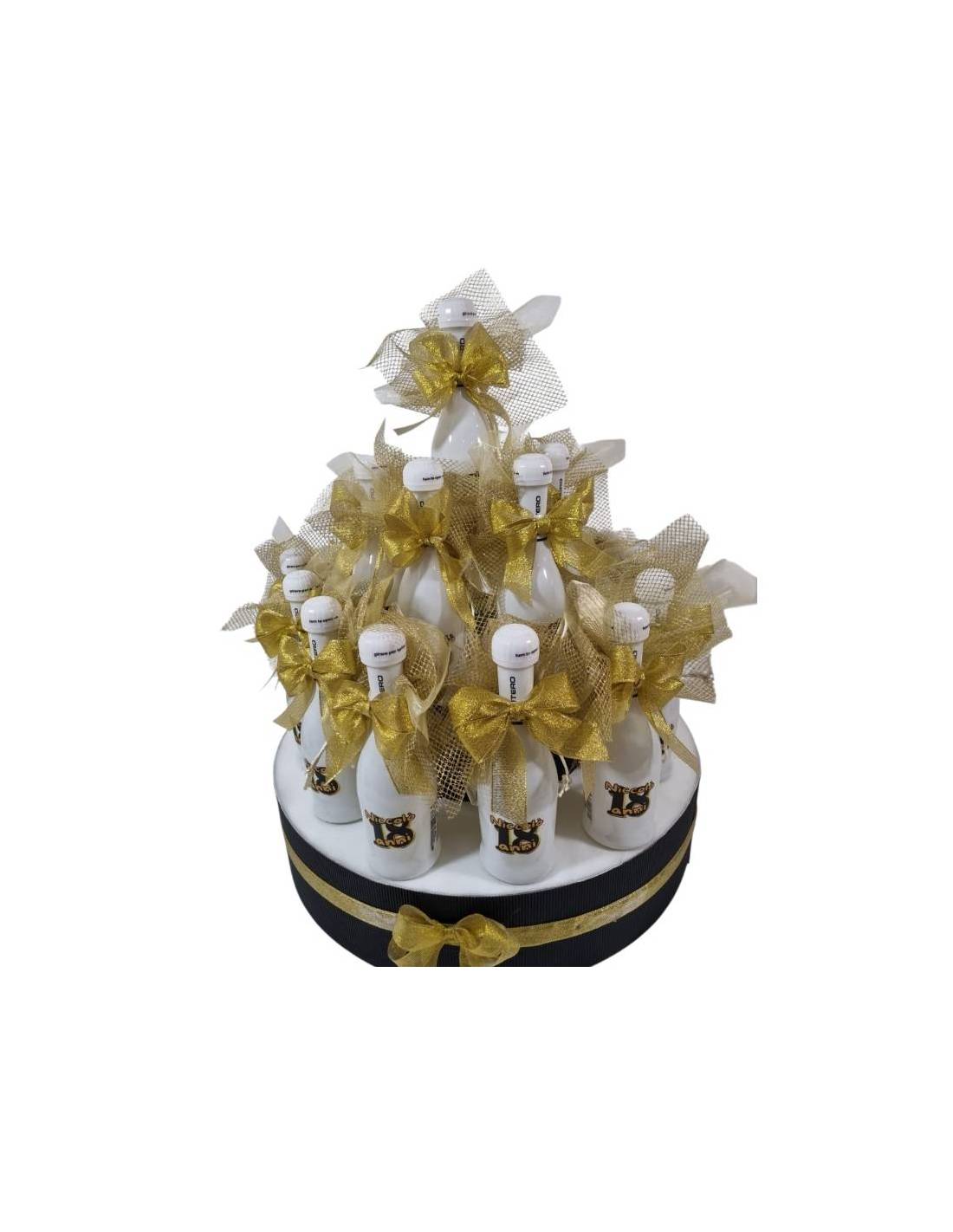 Bomboniere 18 anni mini santero bomboniere bottiglie bianche decorate con fiocco dorato.