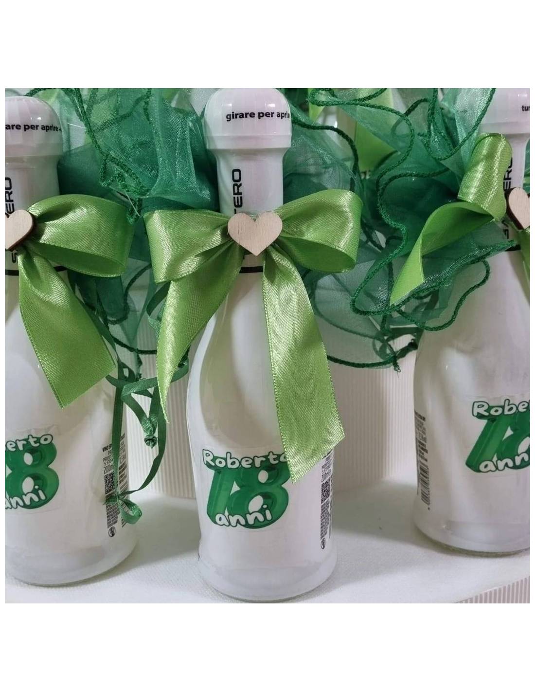 Mini Santero bomboniere particolari bottiglie bianche con nome personalizzato colorato come in foto.