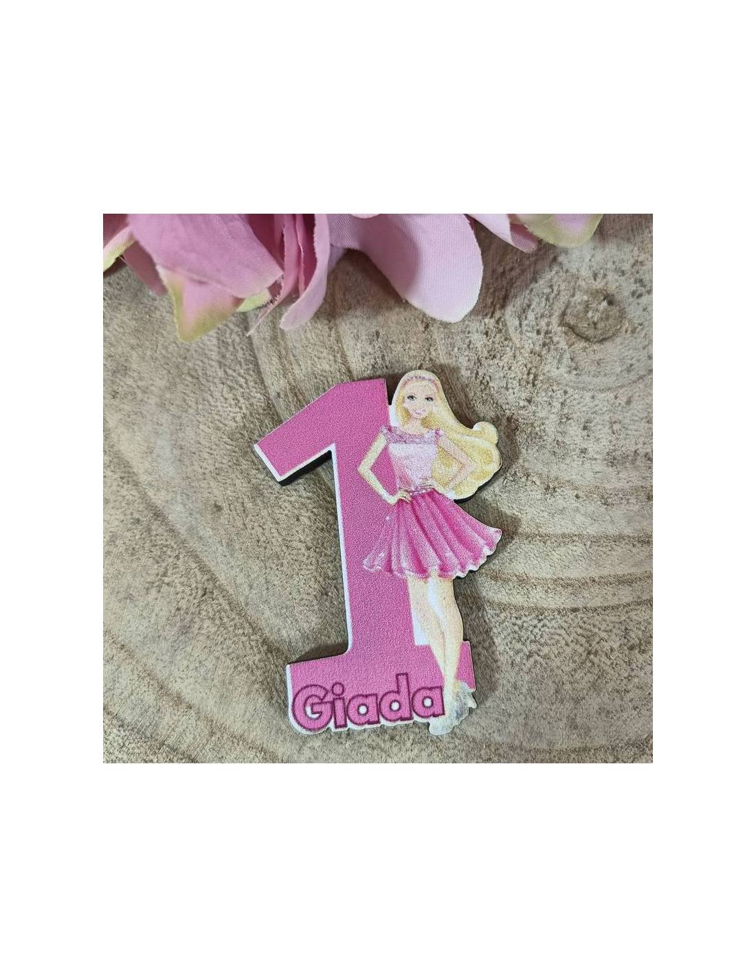 Bomboniere barbie magneti in legno colorati forma numero 1 ideale per evento Primo Compleanno.