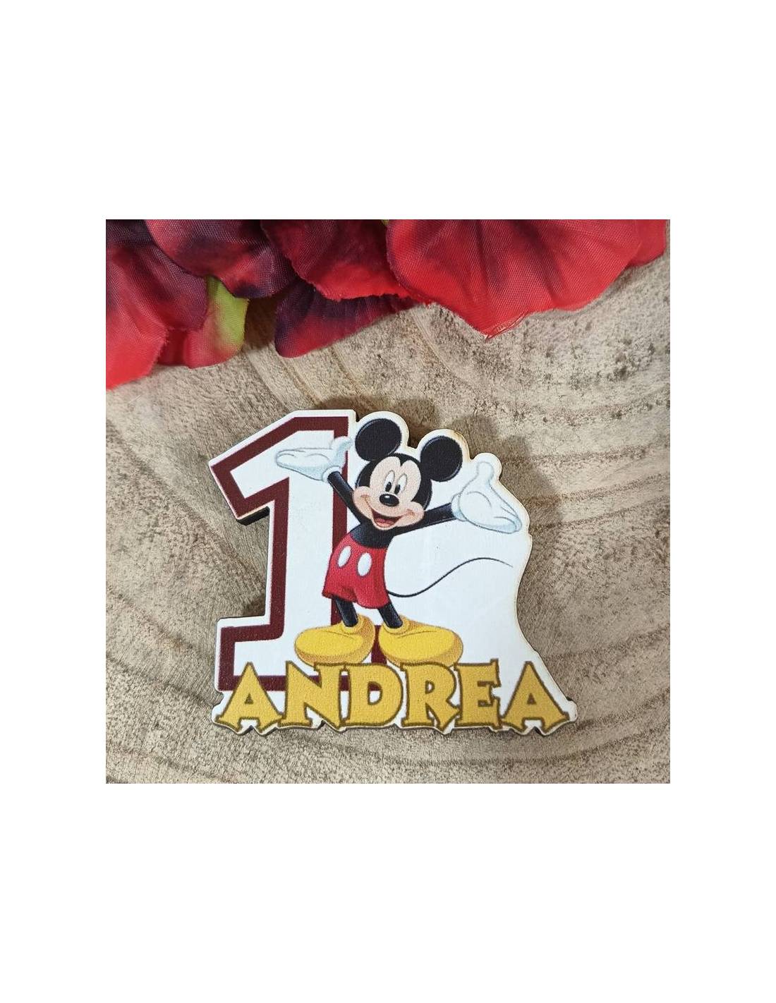 Bomboniere Disney calamite magnetiche in legno topolino numero 1 con nome personalizzato del festeggiato.