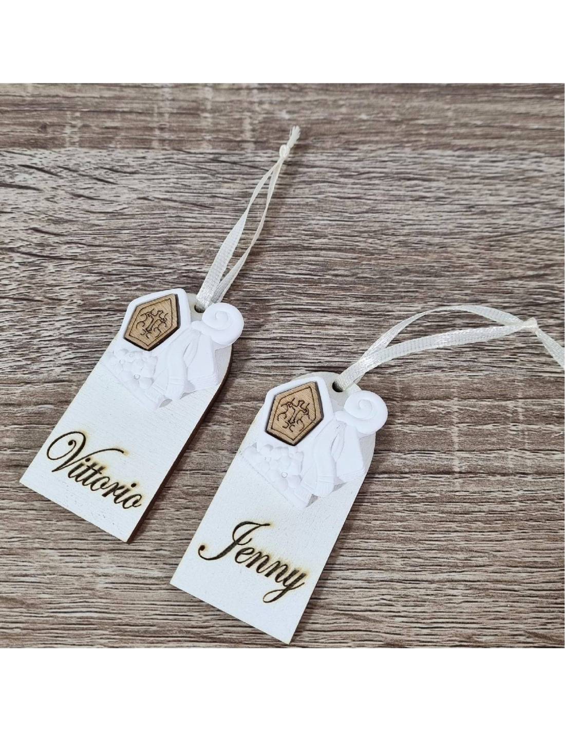 Applicata su ogni lanterna, vi è un magnete a forma di mitra e scettro da vescovo accompagnate da un fiocco in raso di colore...