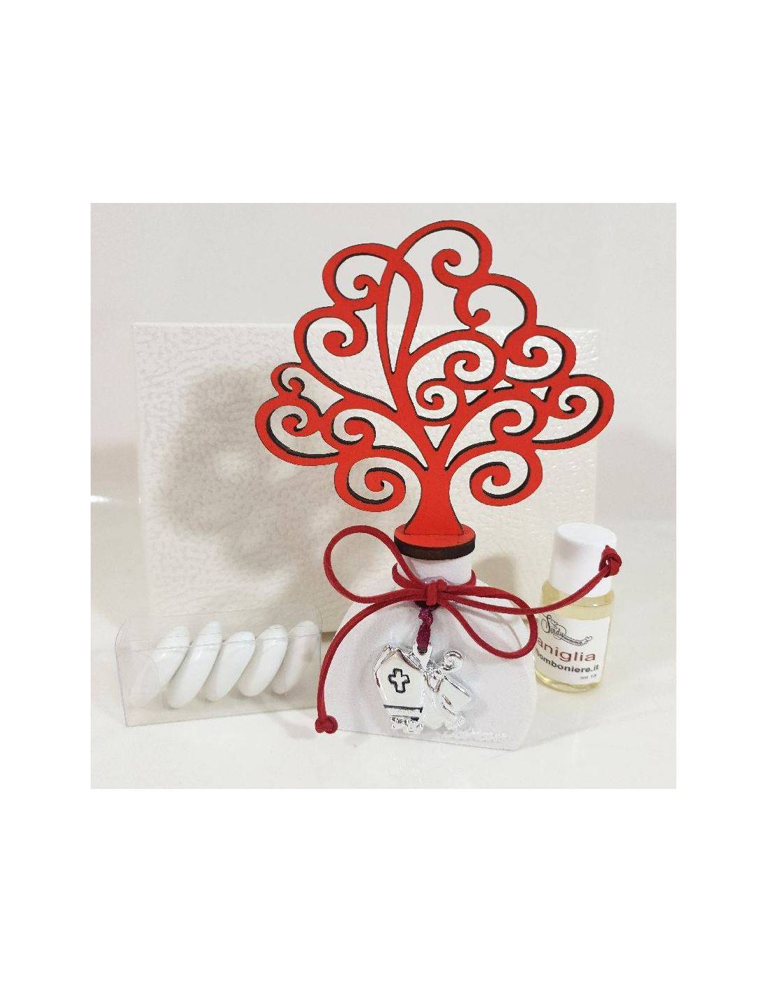 Bomboniere Cresima profumatori Albero della Vita rosso e Mitria argentata