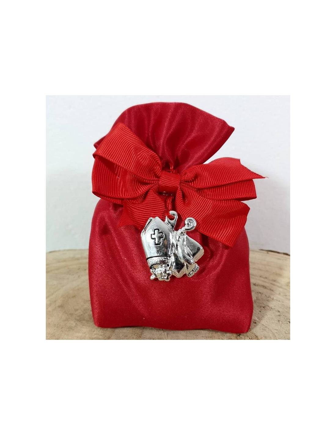 Sacchetto Cresima portaconfetti ciondolo argentato Mitria