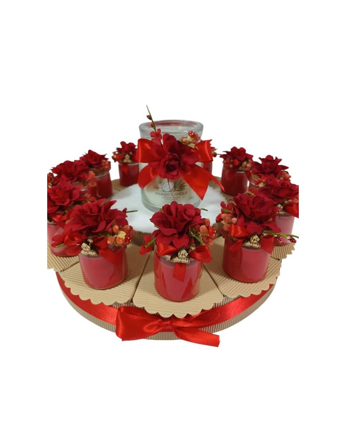 Torta bomboniera Cresima candele fiori rossi