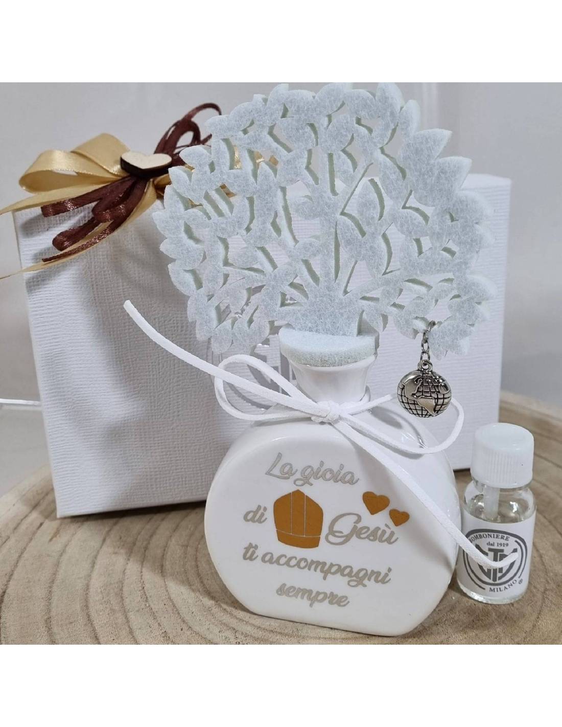 Albero della vita bomboniera profumatore ambiente Cresima charm mappamondo