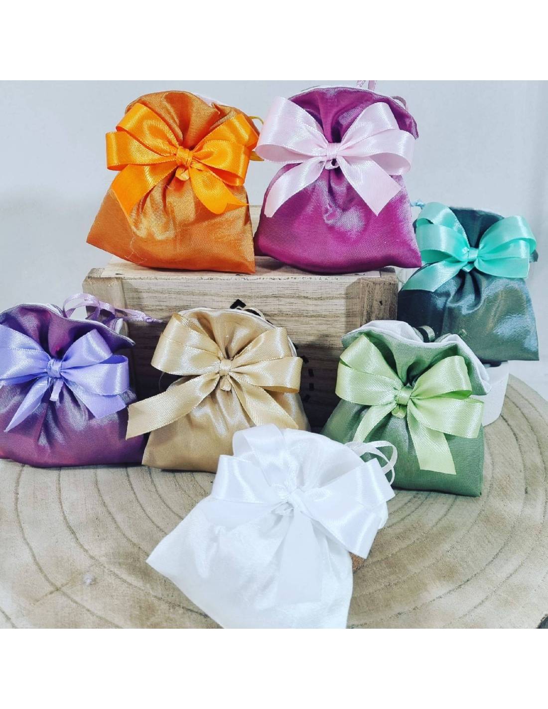 Il sacchetto è completo di fiocco e charm ma puoi scegliere di acquistare i confetti e il bigliettino.