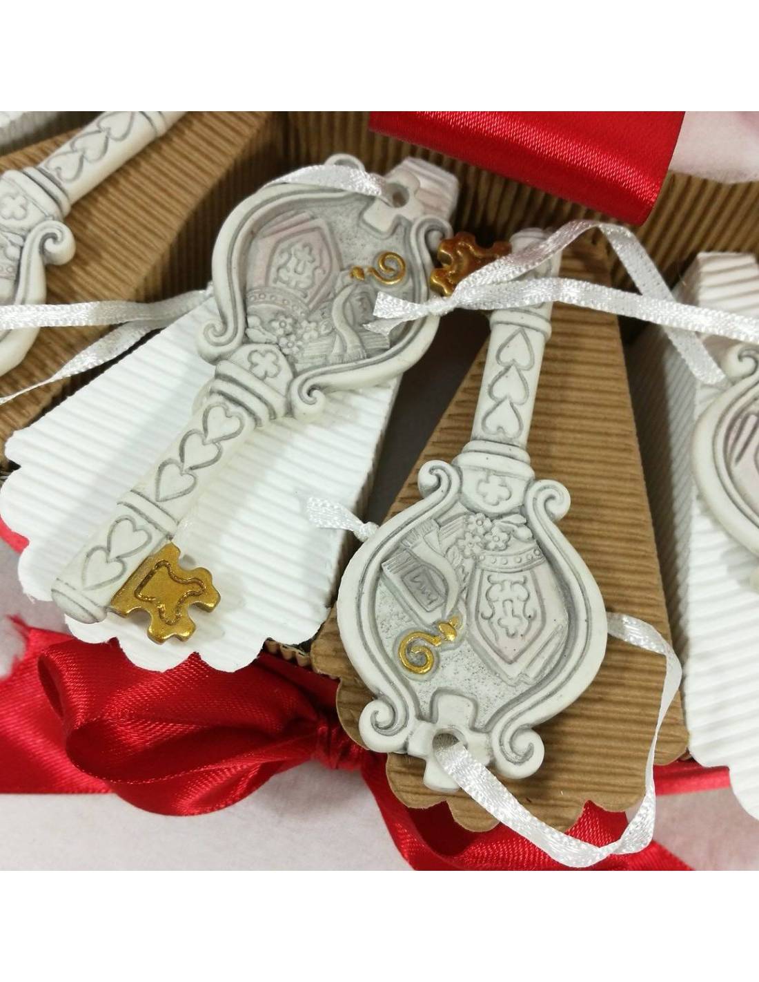 Bomboniere per Cresima su torta con chiave Sacra bella, originale e dal significato religioso.