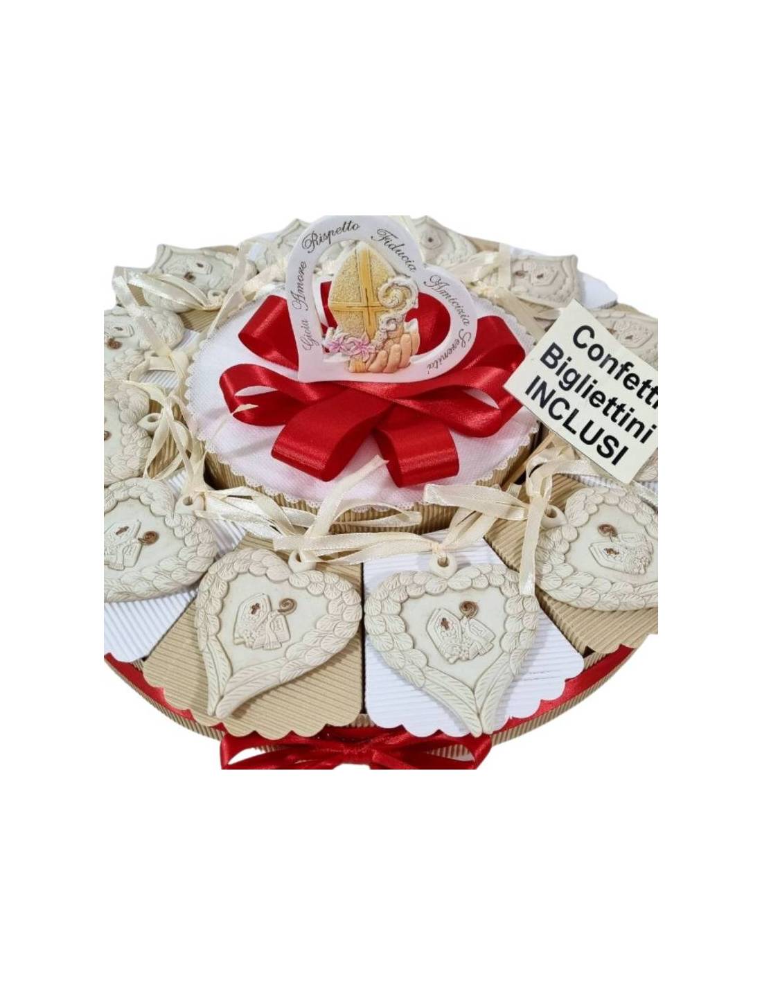 Bomboniere Cresima cuore pendente in composizione torta bomboniera