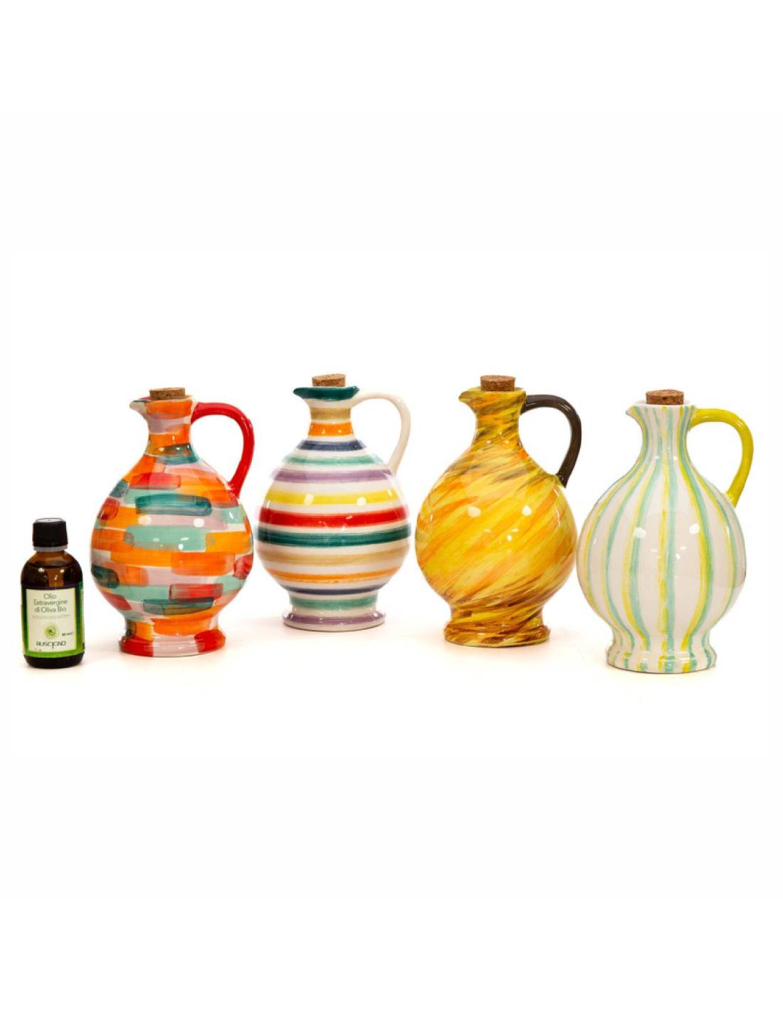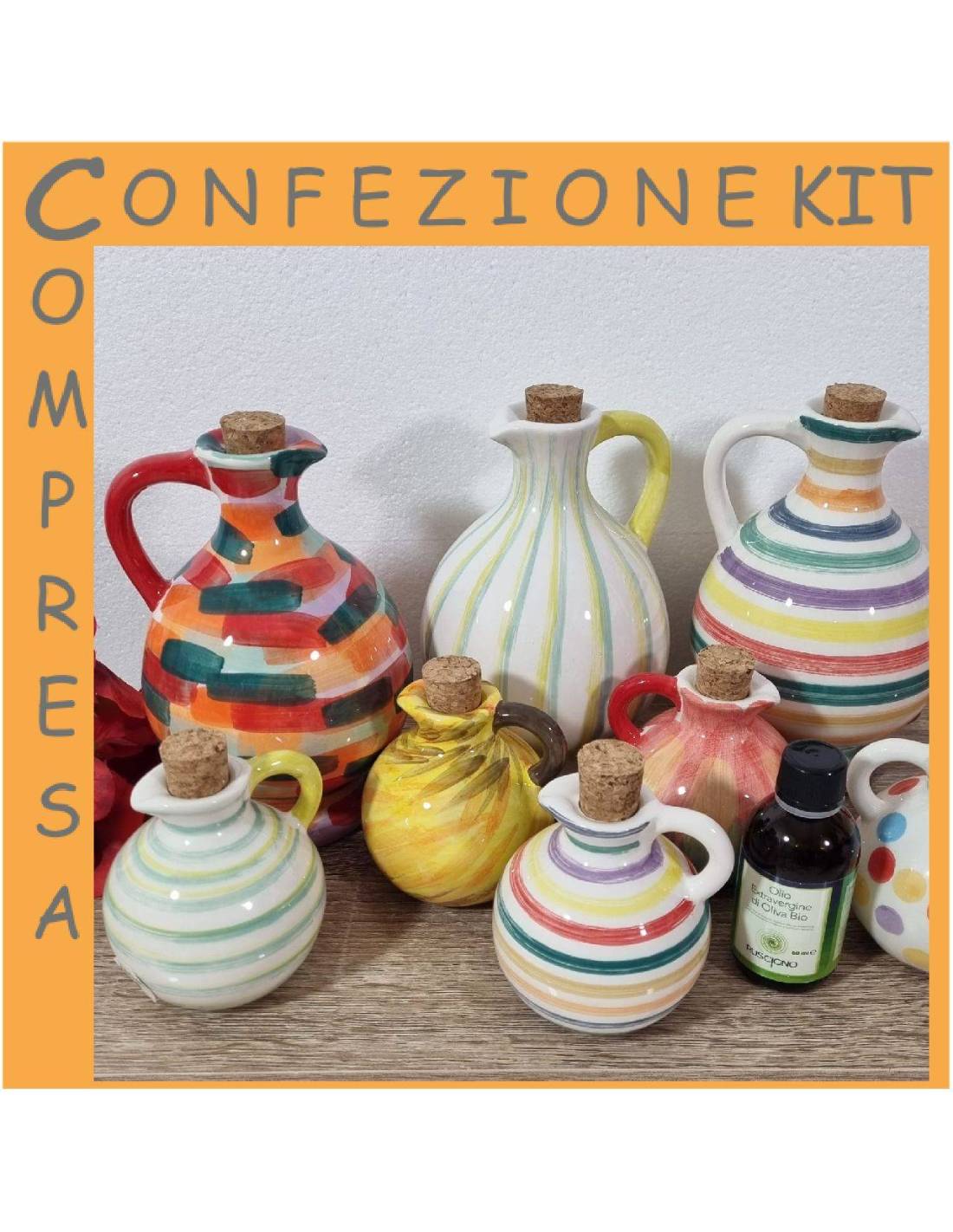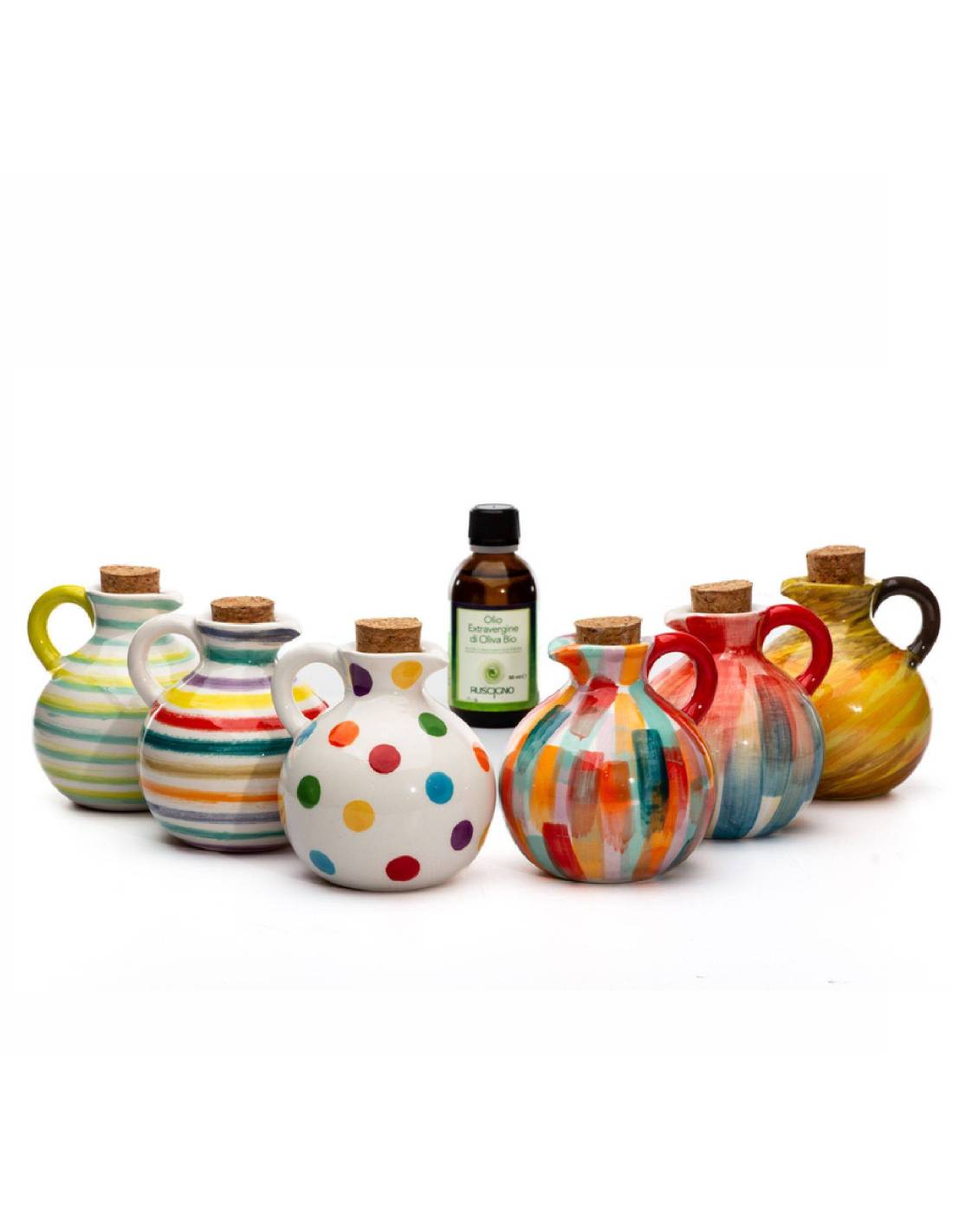 Cod.1 art.DA170 oliere bomboniere Cuorematto 6 fantasie di colore assortite con bottiglietta di olio incluso dimensione 8 cm circa