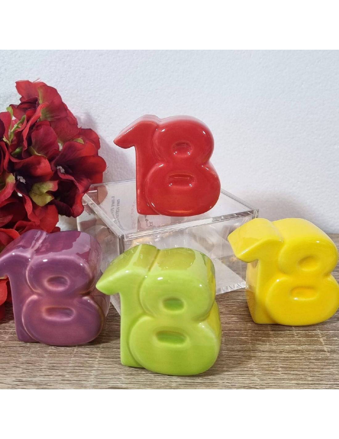 Cod.1 art.D6476 magneti a forma di 18 ideali bomboniere diciottesimo cuore matto bomboniere dimensione 6*6 cm circa.