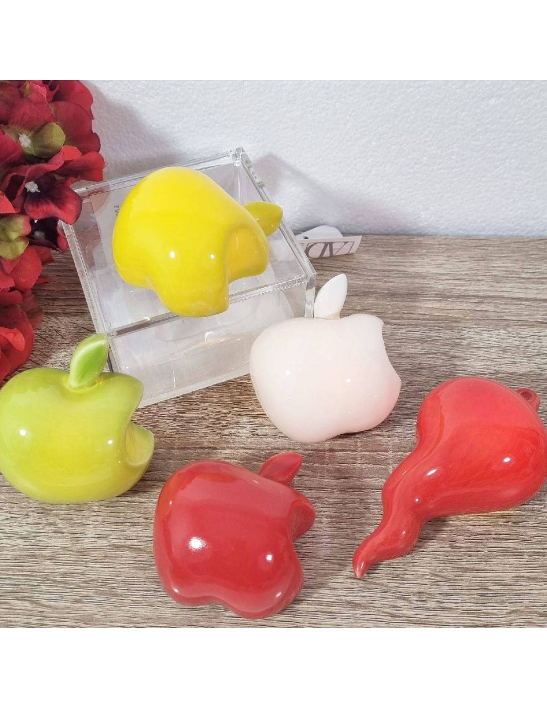 Cod.2 art.D6473 cuore matto bomboniere solidali magneti a forma di mela dimensione 6*7 cm circa.