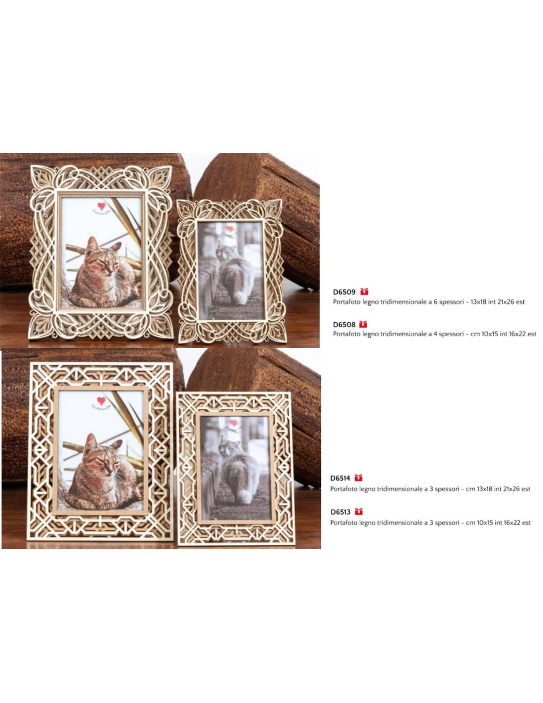 Cod.1 - D6508 - Portafoto legno tridimensionale a 4 spessori (dimensione int. 10x15cm circa - est. 16x22cm circa);