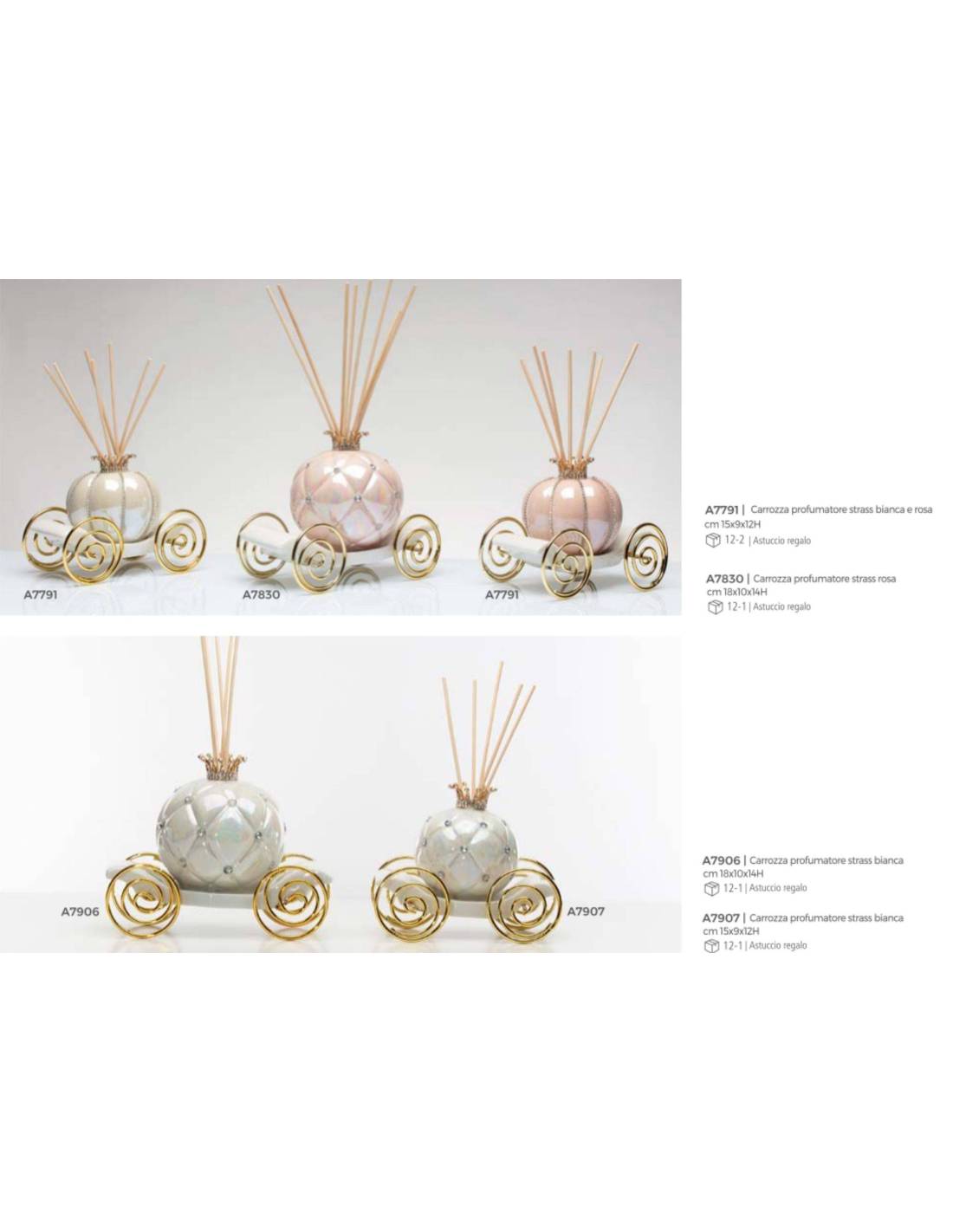 Cod.3 - A7906 - Profumatori per ambienti carrozza bianca con strass media (dimensione 18x10x14h cm circa);