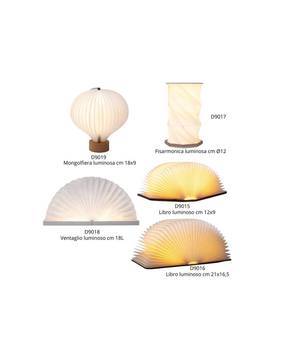 Lampade a led bomboniere originali Cuorematto con vasta possibilità di scelta tra varie forme (ventaglio, libro, mongolfiera o fisarmonica).
