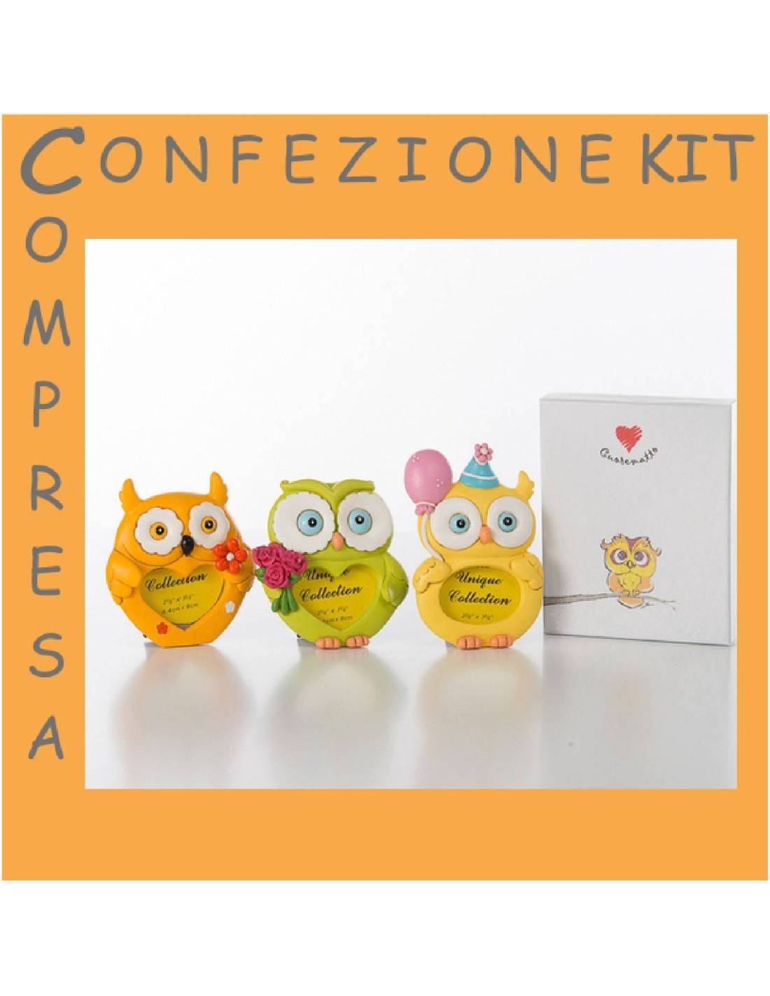 Bomboniere solidali portafoto gufetti assortiti Cuorematto D5467 confetti