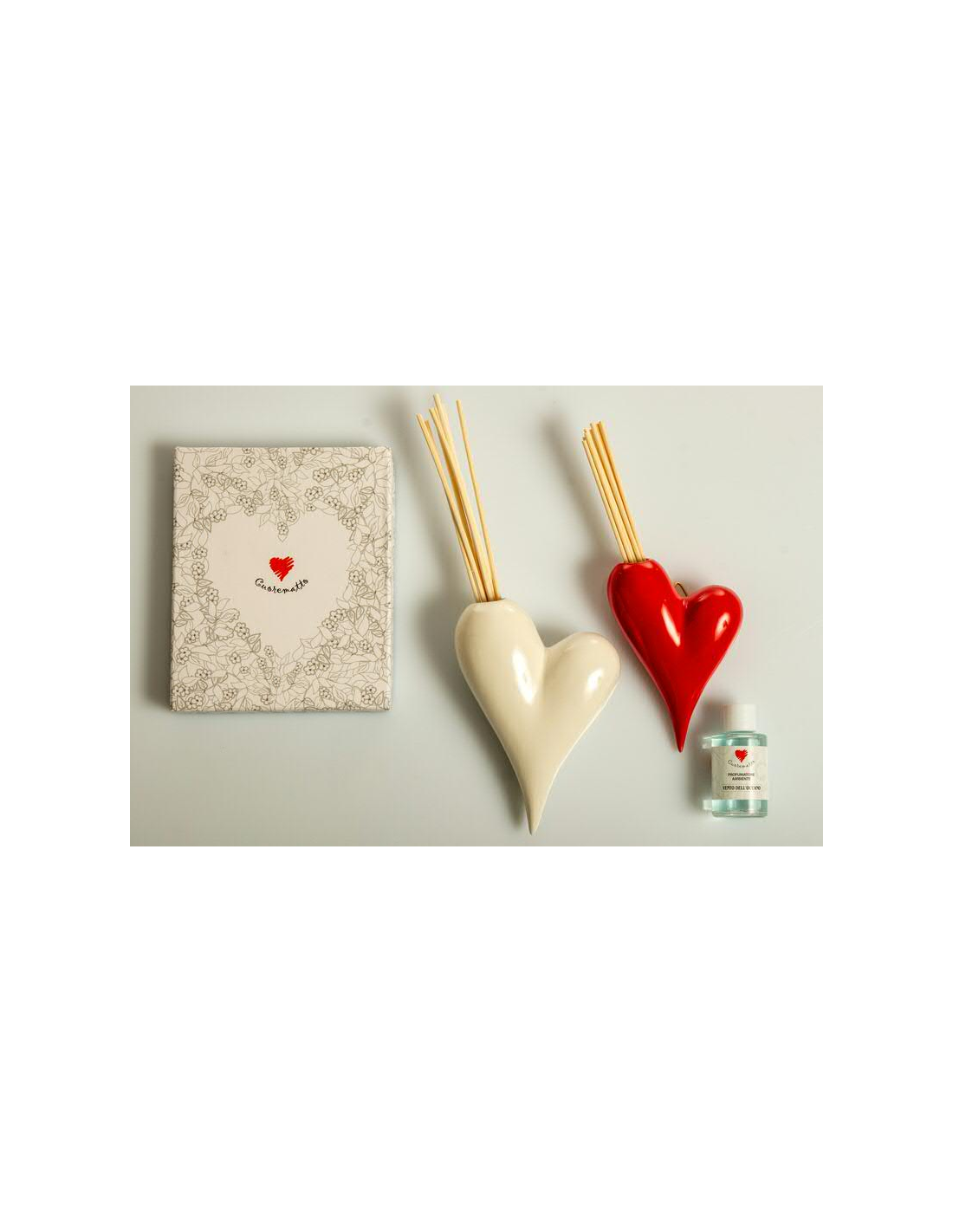 Bomboniera Cuorematto set profumatore e vaso cuore 2 colori da appendere, midollini diffusori e fragranza inclusa