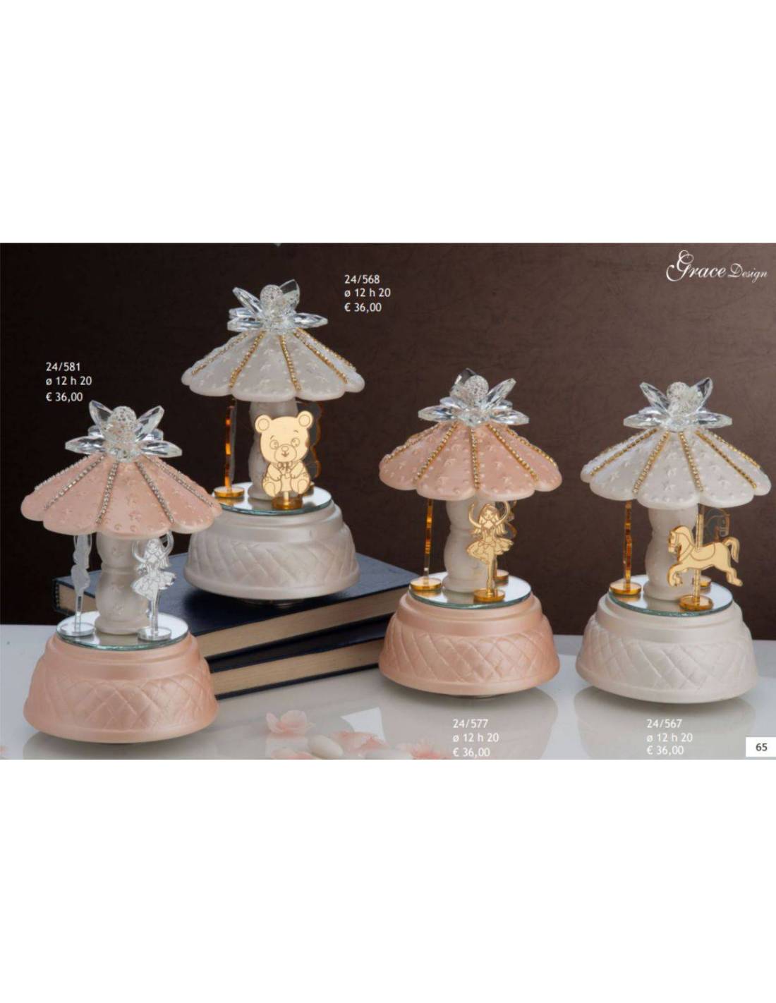 Cod. 1 - 24/566 - Bomboniera carillon angioletti standard (Ø10xh14cm circa);