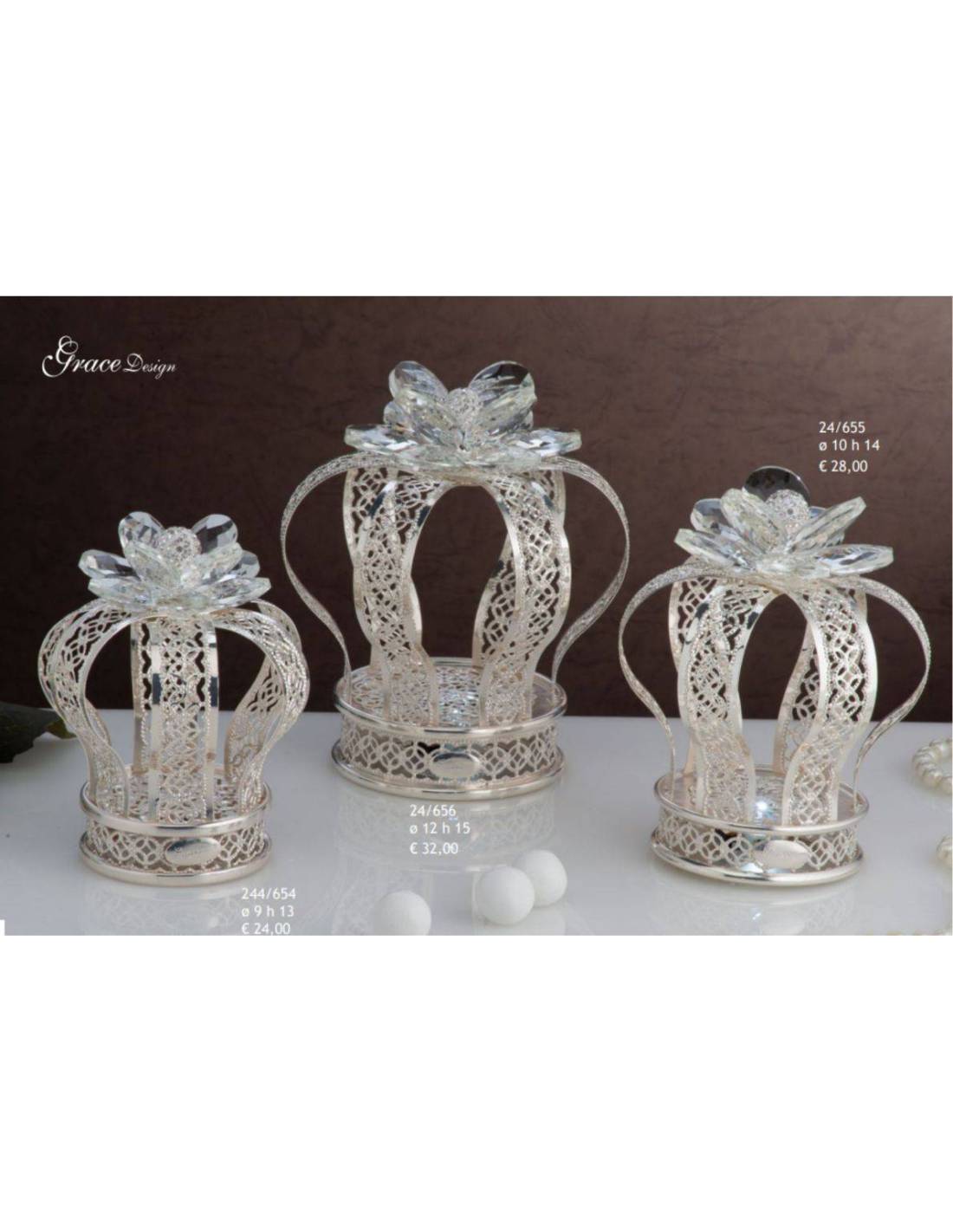 Cod. 3 - 244/654 - Fiore bomboniere cristallo corone argentate standard (Ø9xh13cm circa).
