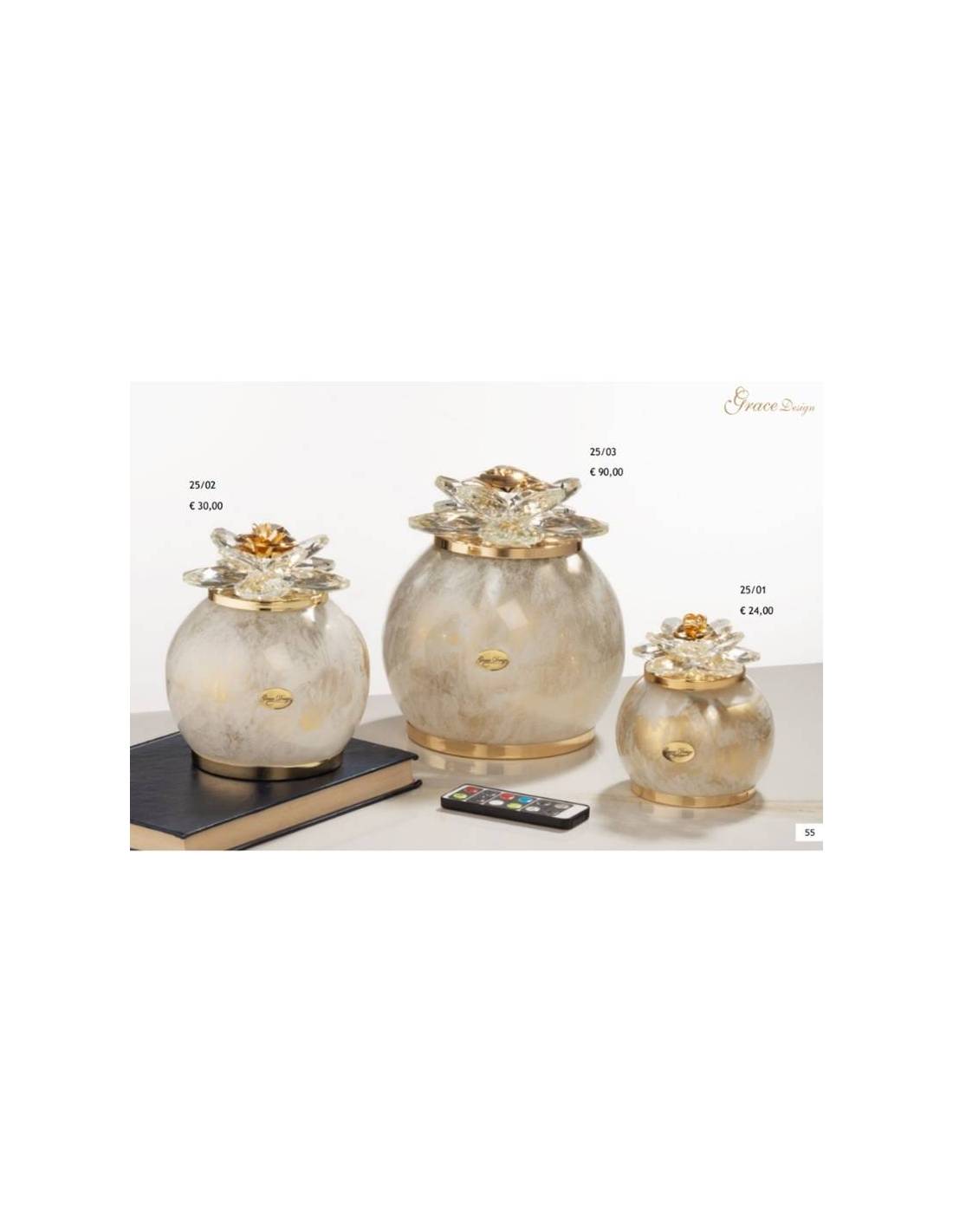 Bomboniere raffinate ed eleganti lampade luci led tonde decoro fiore con possibilità di scelta tra varie dimensioni.