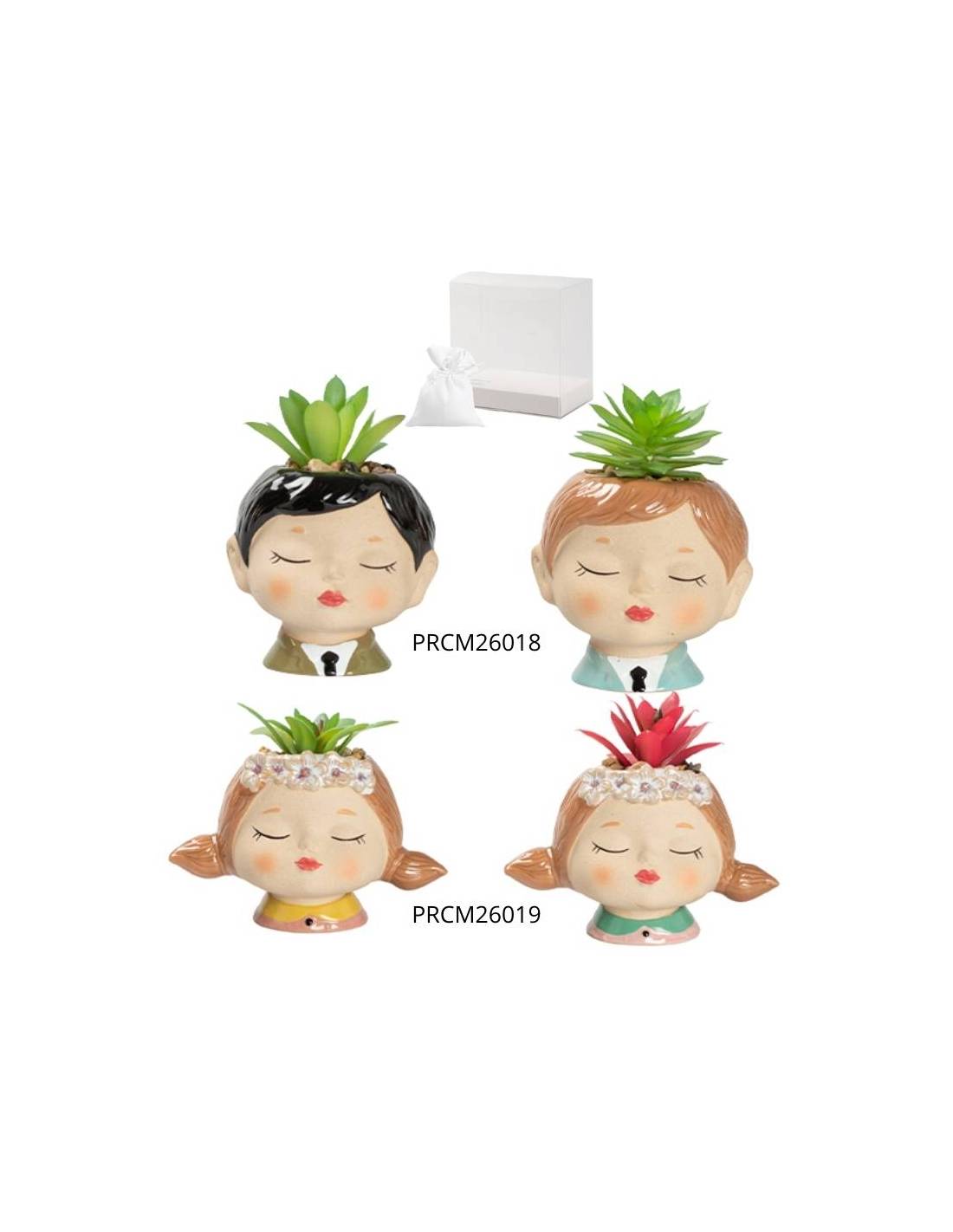 Bomboniere particolari bellissimi vasetti porta piante con piantina artificiale inclusa e possibilità di scelta tra modello per bambino o bambina.