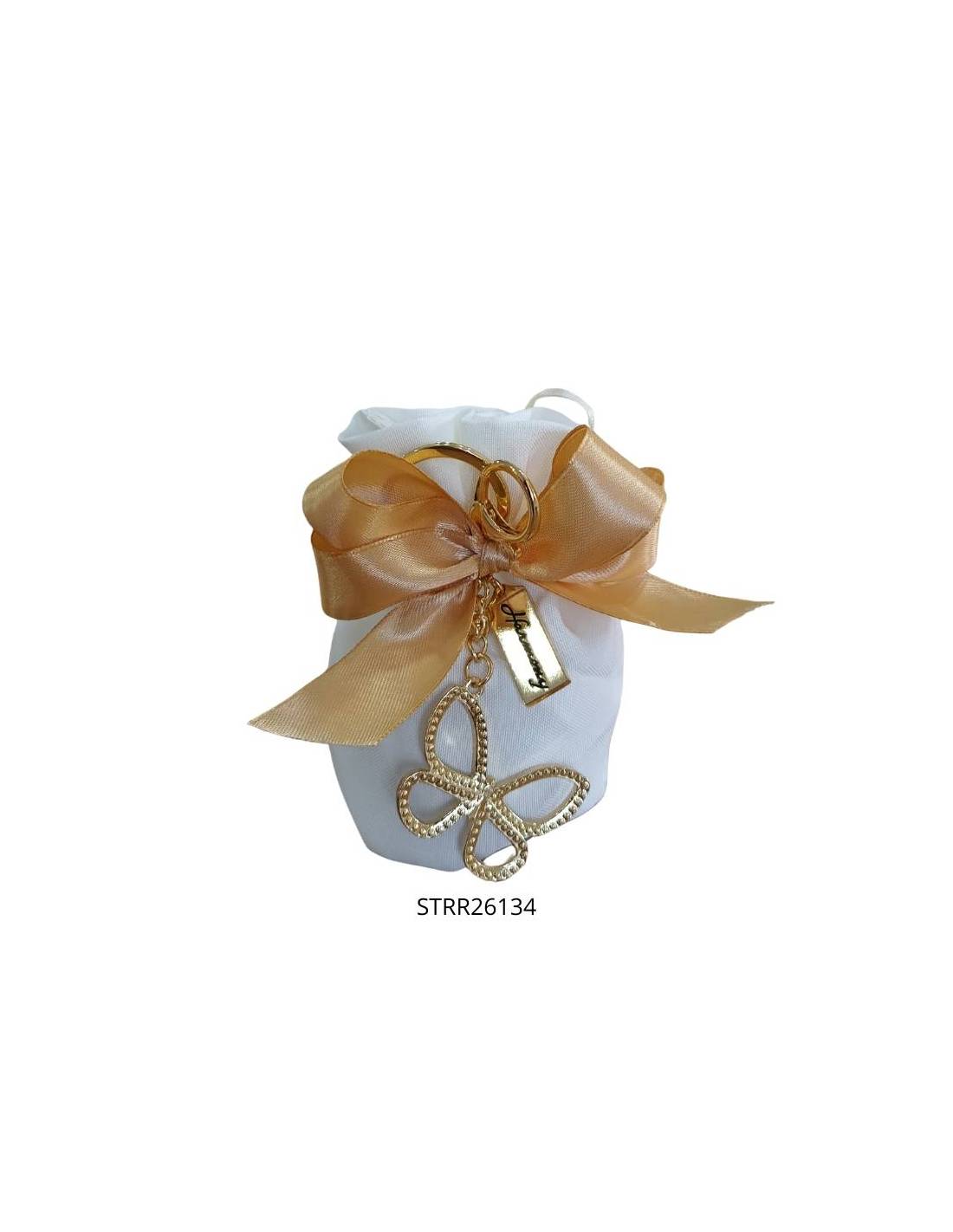 Sacchetti portaconfetti bianchi portachiavi animali farfalla dorata