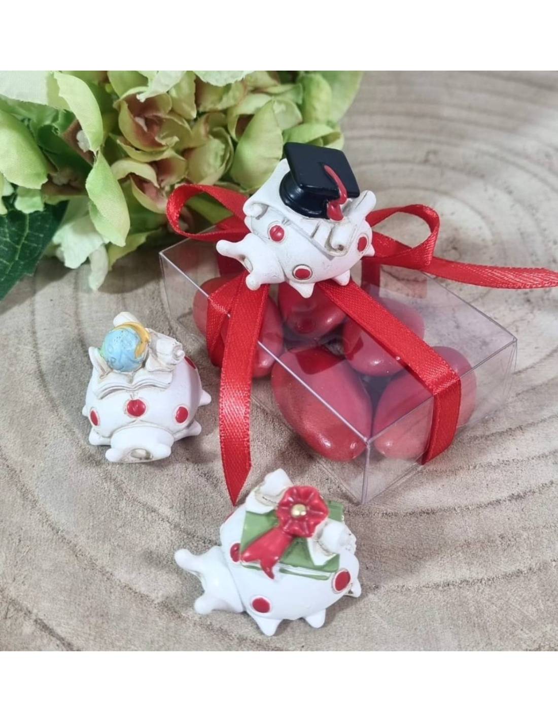 Bomboniere per laurea economia e management. che comprendono al prezzo di un euro: scatolina, 5 confetti al cioccolato, nastro in raso e coccinella.