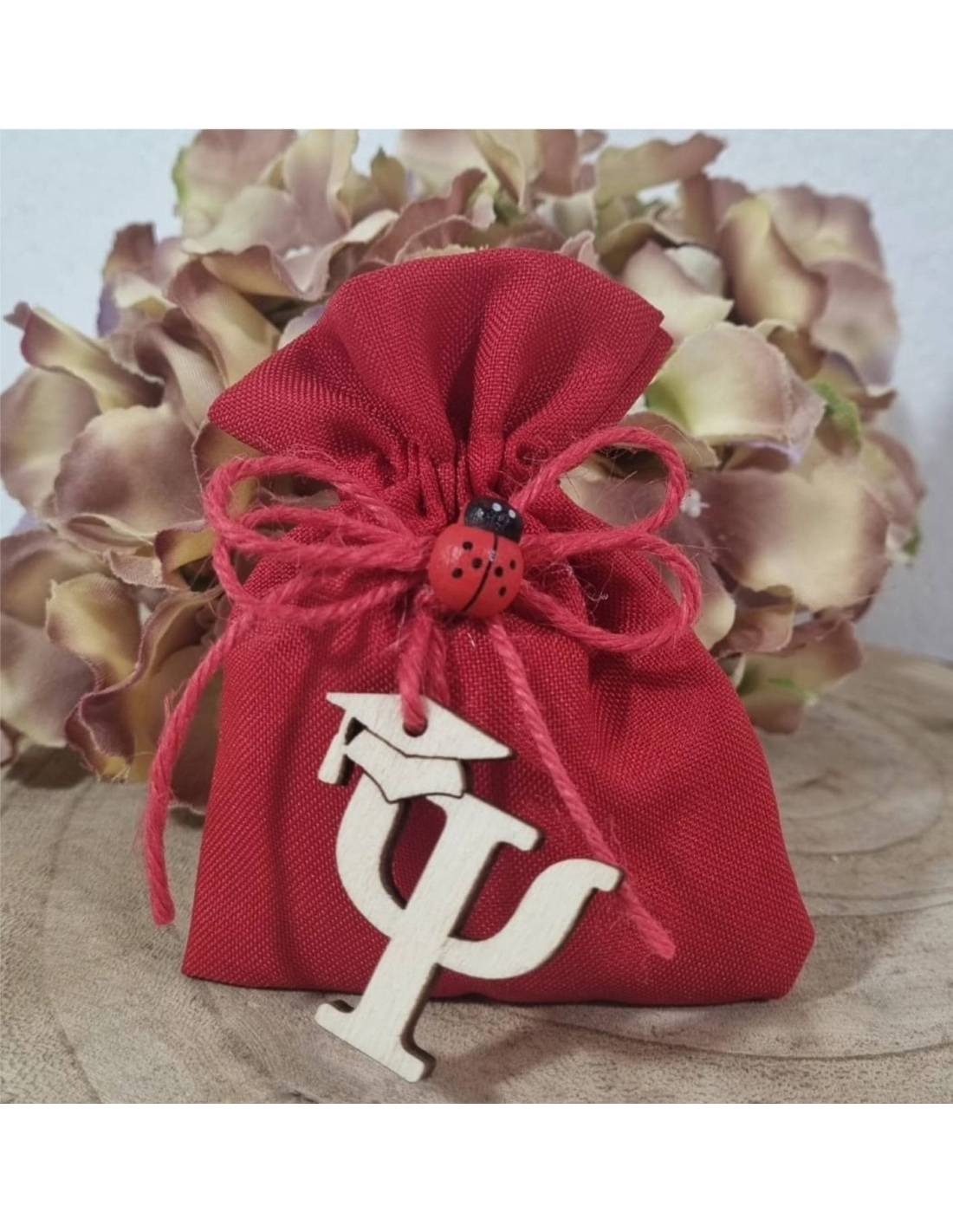 Bomboniere Laurea Psicologia sacchetto psy legno e coccinella