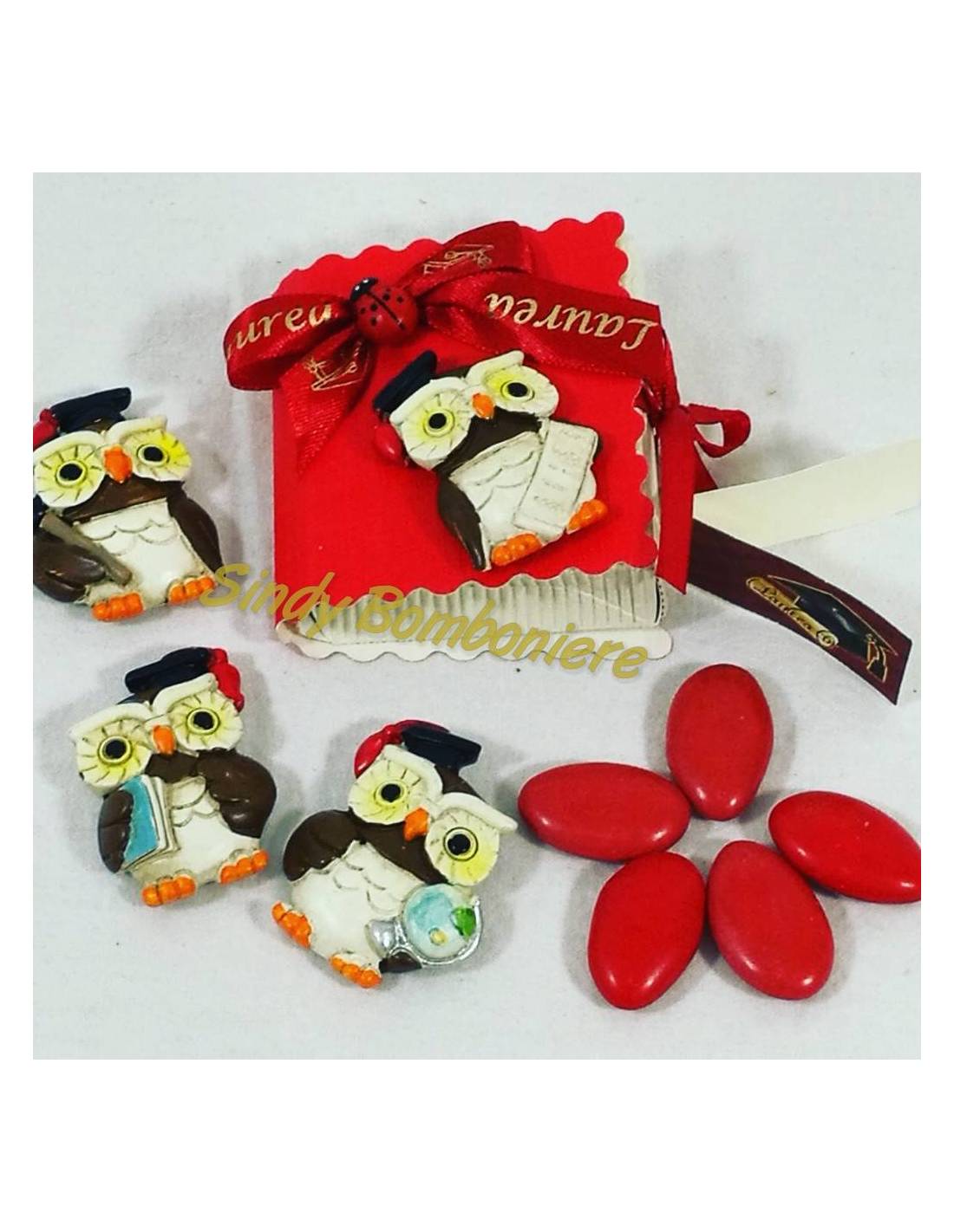 Scatoline per confetti con gufetti e fiocco rosso per laurea