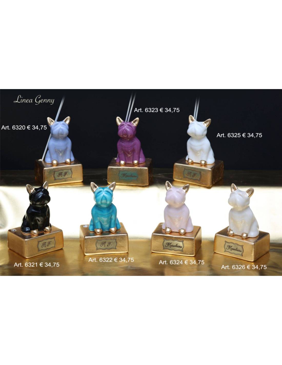 Profumatori per ambienti che rappresentano statua appoggio animali cane bulldog francese appartenenti alla Linea Genny Marechiaro.