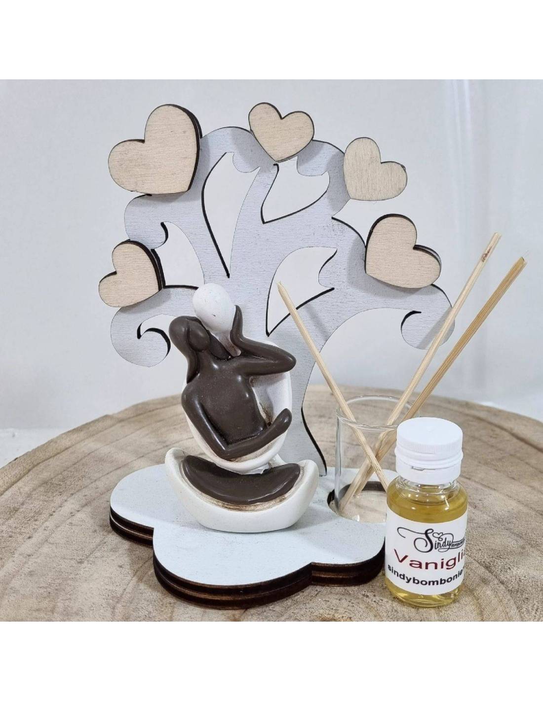 Albero della vita profumatori sposi abbracciati di colore marrone e bianco completi di essenza e bastoncini.