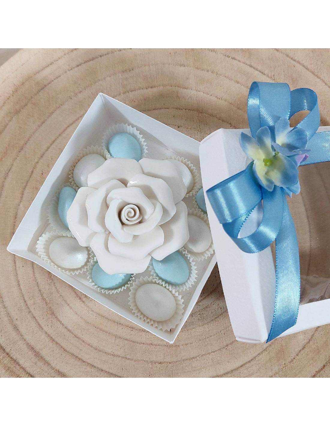 Bomboniere fiore in porcellana bianca confetti cicomandorla a colore