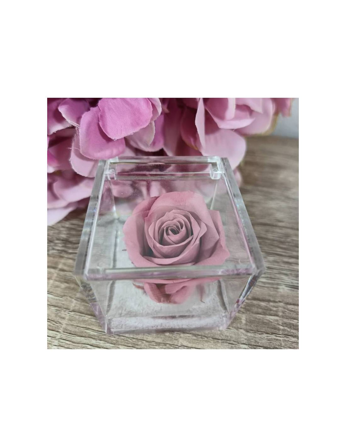 Rosa stabilizzata bomboniera rosa antico in plexiglass