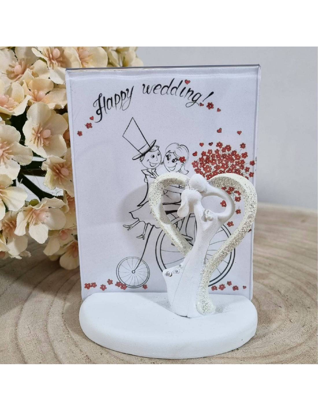 Bomboniere matrimonio originali sposi stilizzati su base con plexiglass per foto.