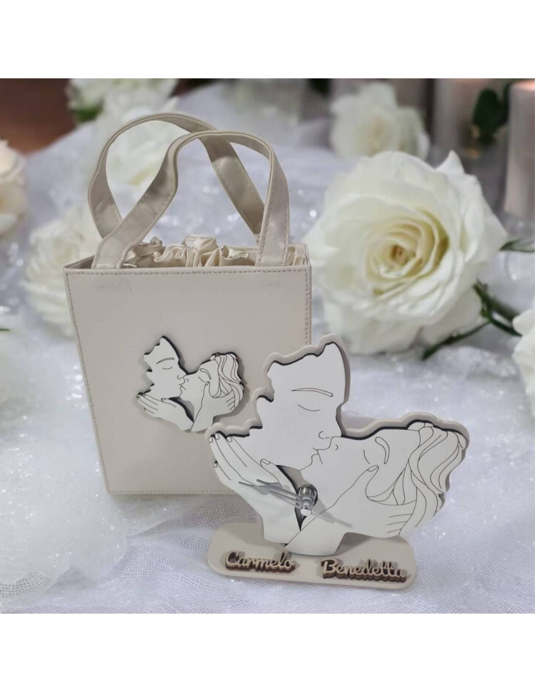 Bomboniere Il Bacio orologio con scatola borsetta in pelle