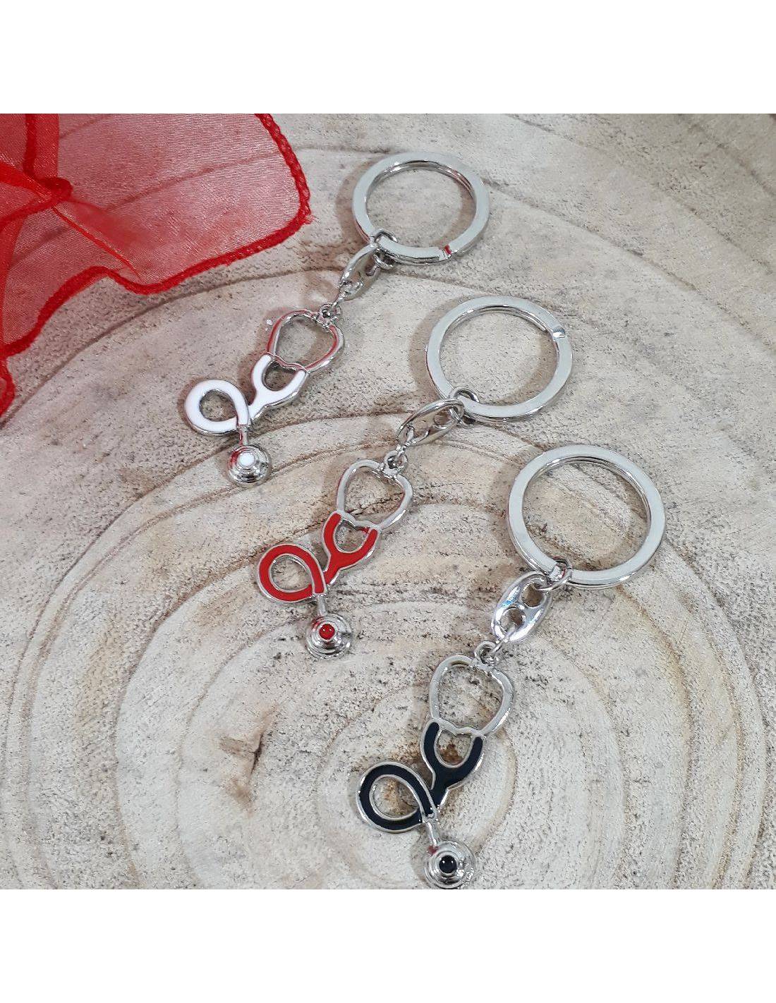 Portachiavi in acciaio stetoscopio in 3 colori rosso, bianco e nero bomboniere laurea infermieristica originali.